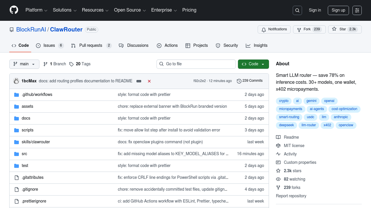 Smart LLM router with ~78% cost savings via x402 micropayments.