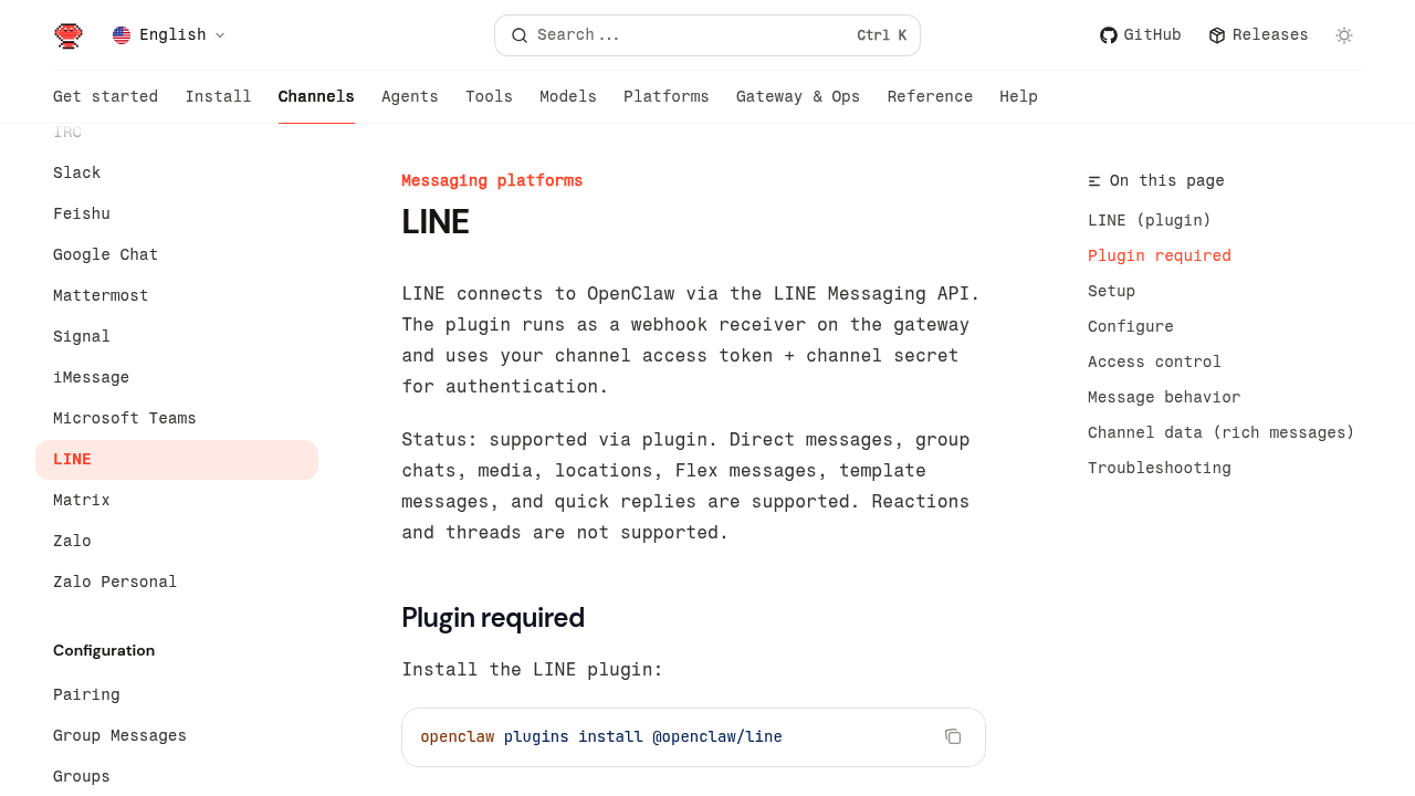 Connect OpenClaw to LINE messenger, popular across Asia.
