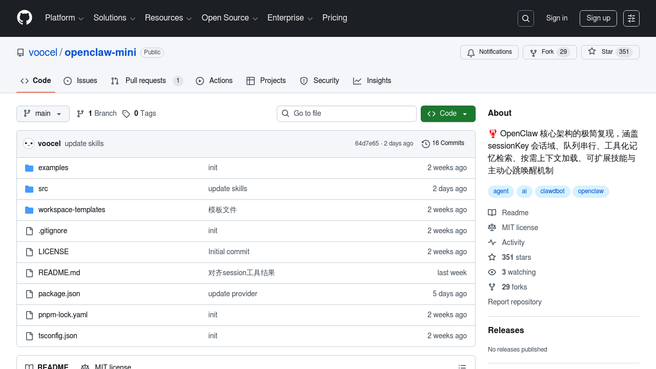 Minimal reproduction of OpenClaw core architecture: session keys, serial queues, tool-based memory retrieval.