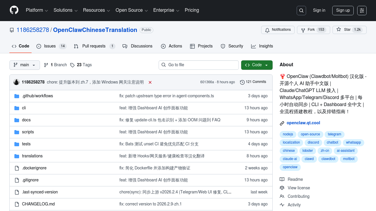 Full Chinese localization of OpenClaw — CLI + Dashboard, multi-platform support, setup guides & troubleshooting.