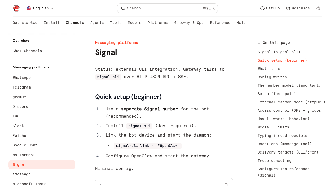 Connect OpenClaw to Signal for the most private AI assistant experience. End-to-end encrypted messaging with full media support.