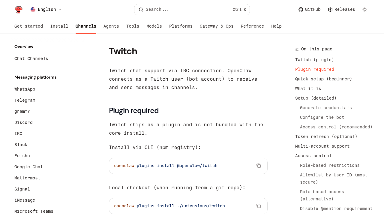 Run OpenClaw as a Twitch chatbot for live streaming.